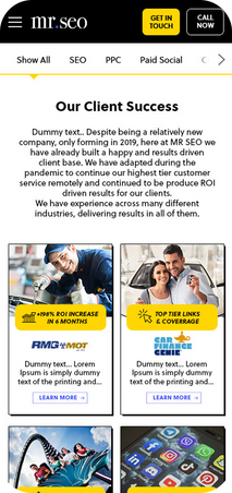 Overview: Designed the website for Mr SEO, a digital marketing company, with a focus on clear messaging and conversion-driven user journeys. Worked closely with stakeholders to refine layouts, calls to action, and page structure, supporting lead generation through CRO-led design decisions.